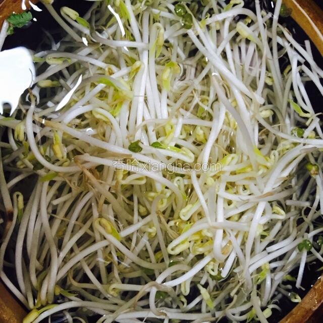 4.水烧开放入几滴油倒入黑木耳和豆芽烫下