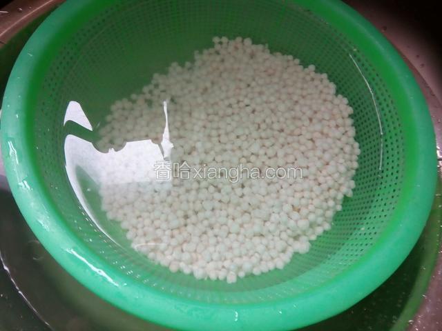 4.看西米只剩下白芯,冲凉水搓洗,使西米更q