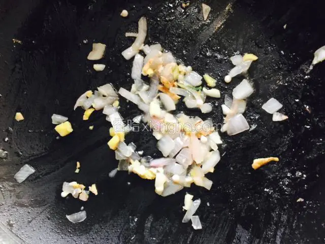 4.锅加入油爆炒生姜、大蒜、洋葱,加少许盐