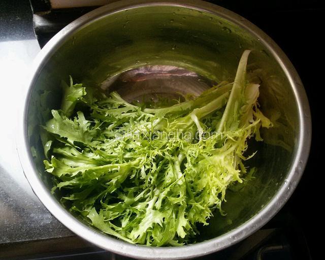 5.把苦菊切大段,然后把所有食材放进大碗。