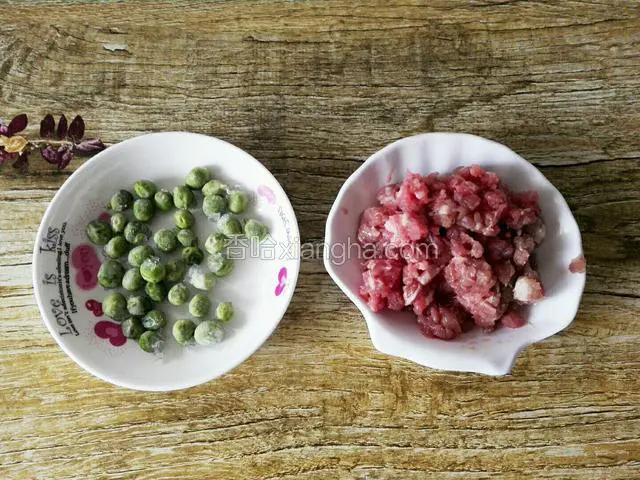 4.处理过牛肉馅和青豌豆备齐(青豌豆不用焯水)