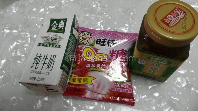 2.拿两个碗,每个碗放35克QQ糖。一个碗里放100克凉白开,另一个碗里放100克牛奶