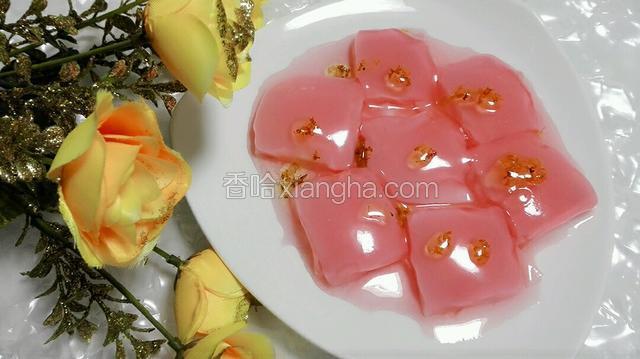 4.先把牛奶混合液倒玻璃碗里入冰箱冷藏至凝固,再放第二层透明的汁液入冰箱冷藏2小时。