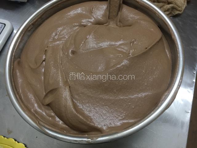 6.巧克力馅料冷了以后加入咖啡力娇酒.搅拌均匀