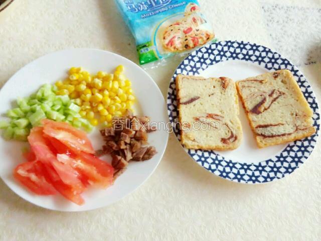 1.准备好材料,做好的土司切片,其余材料切丁