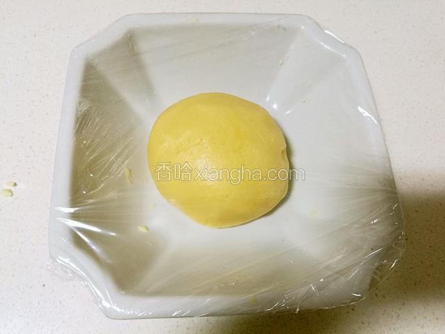 5.用手把黄油和面粉搓匀(搓匀的面粉呈现粗玉米粉的状态)。