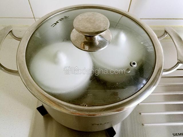 3.把紫薯丁和南瓜丁的碗盖上盖子在蒸锅里蒸十五分钟。