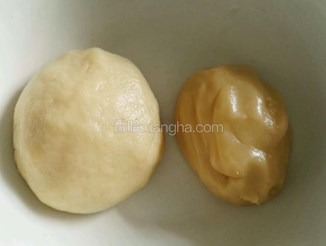 1.水油皮和油酥和成光滑面团盖保鲜膜醒20分钟