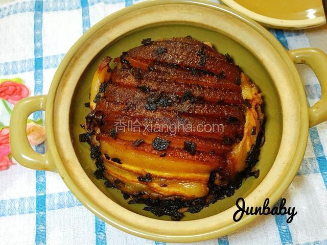 1.梅菜干用温水泡发浸1小时左右,中途多换几次水挑出老梗。