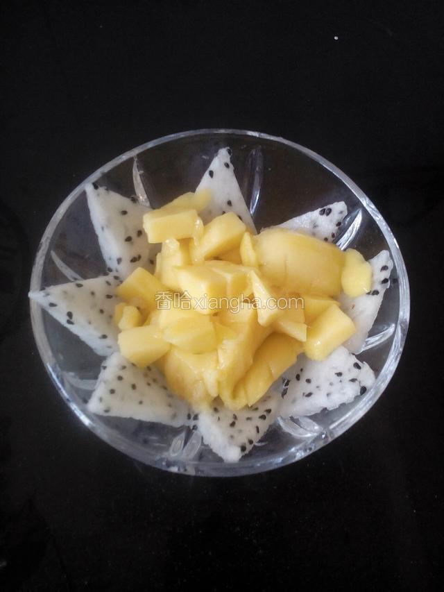 4.芒果切丁,放入中间