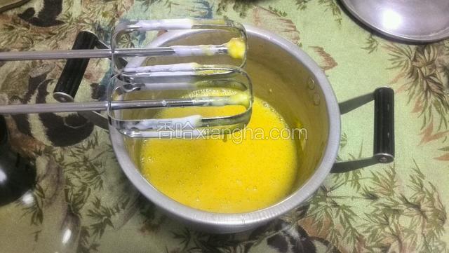 16.这是翻拌均匀的蛋黄糊,可以流动的有纹路的蛋黄糊。