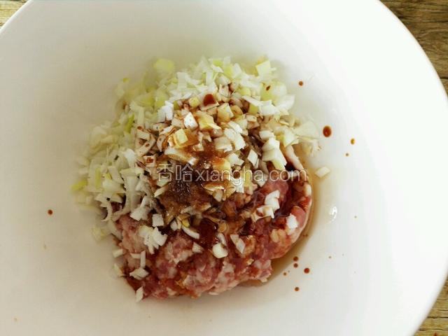 4.羊肉馅很滋润,放一般备用。