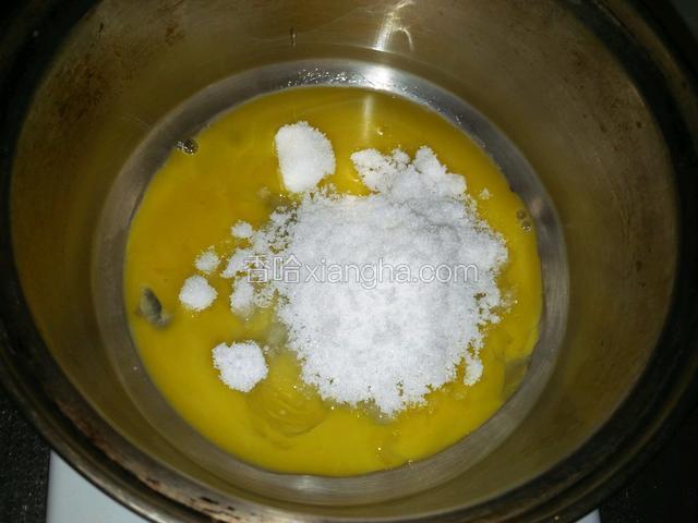 5.牛奶缓慢倒入蛋黄液,边倒边搅拌