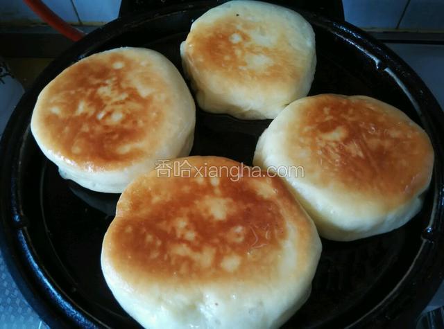 4.电饼铛烧热倒油,保持油温70度左右,放入饼胚