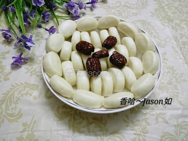 6.切好,放入蒸盆上醒发10分钟水烧开后再蒸10分钟左右,收火焗2分钟开锅。