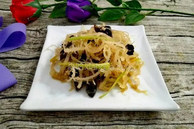 3.泡好的石花菜多洗几次捞出挤干水分放入容器内