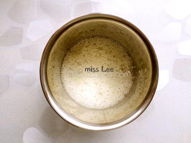 6.用电动打蛋器将蛋白打至鱼眼泡时,加入1/3细砂糖;