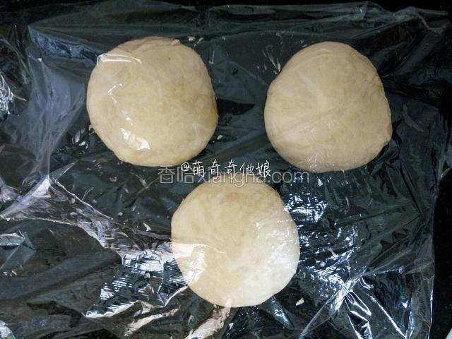 5.滚圆盖保鲜膜松弛发酵30分钟。