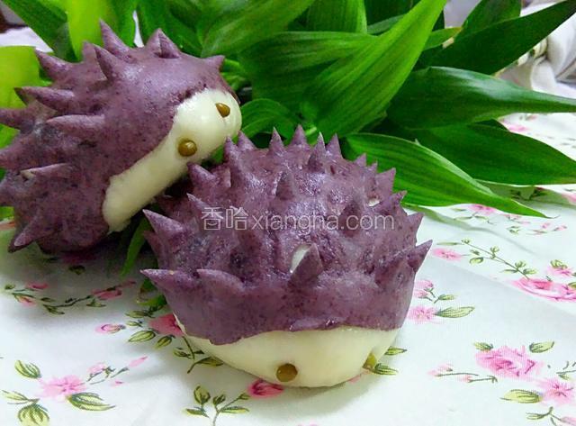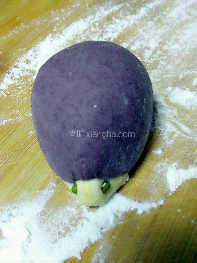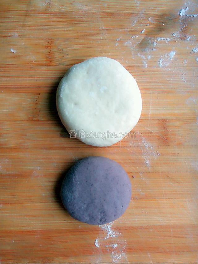 5.排气,白面分成比馒头略小等大的剂子,紫米面稍微小些