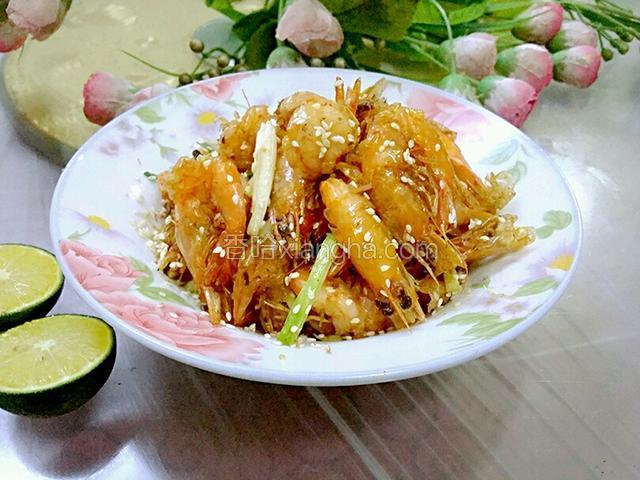 6.腌制虾子的过程中,我们把香葱切成寸长的段,姜切丝,长度和葱段相等