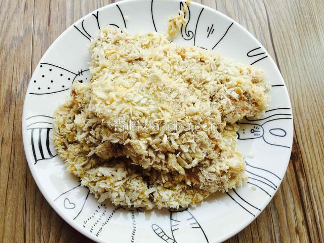 2.用松肉器把每片鸡胸肉两面都捶松,这样好入味。