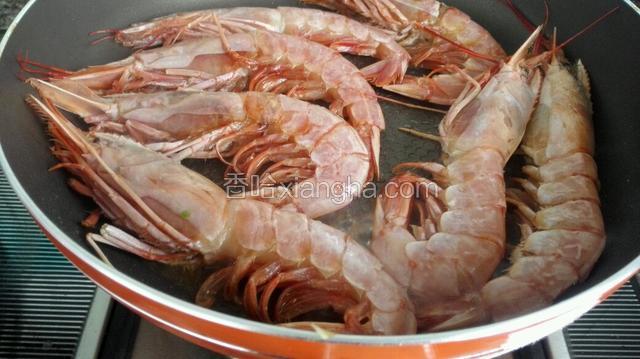 3.锅热放入适量油,将虾两面煎至变色出锅,煎至一下是为了让虾的皮酥脆!