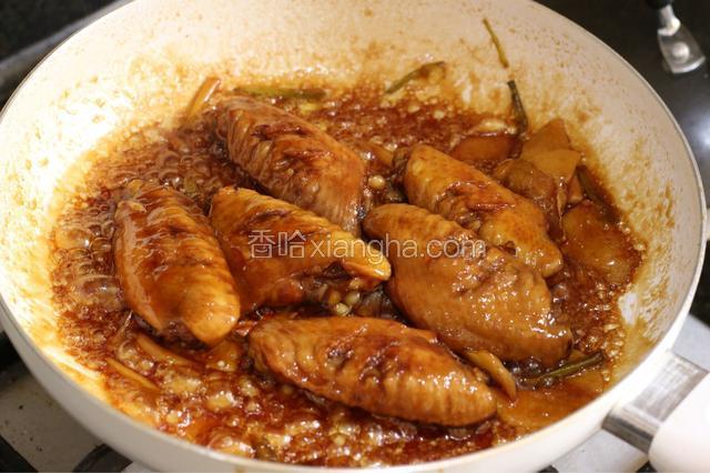 5.锅中放少量油,中小火将鸡翅根煎至表皮金黄。