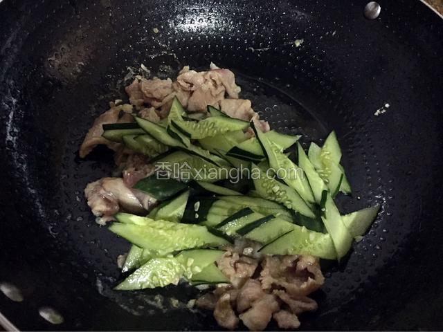 5.放入黄瓜,翻炒至断生变软