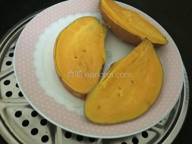 3.蒸到筷子可以轻松插入红薯即可