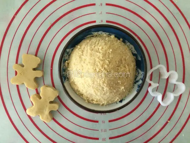 4.看我用饼干磨具做的两只小熊,绿豆沙做好了,可塑性很好哦