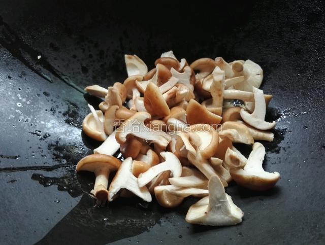 4.倒入香菇翻炒调入适量老抽、生抽、醋、料酒和白糖
