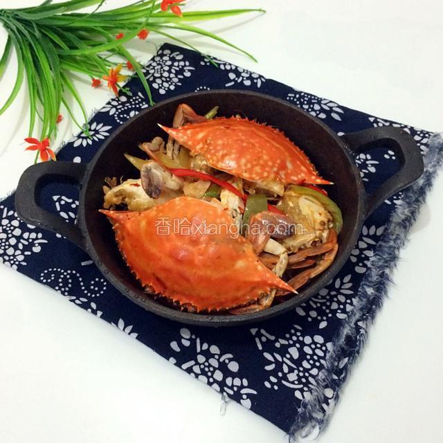 2.梭子蟹用清水冲洗干净,将梭子蟹去掉内藏。斩成块。