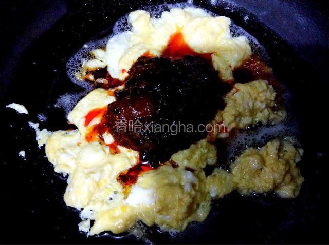 6.锅中加油烧热,倒入打匀的鸡蛋液炒熟