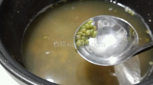 3.绿豆放电饭煲里煮,加半锅水。