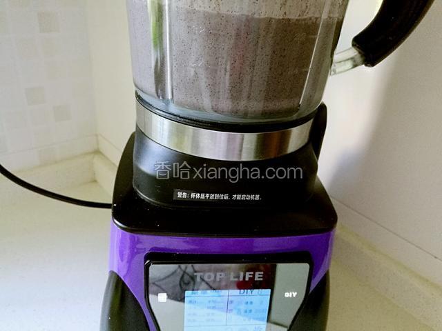 6.将黑芝麻,泡好的糯米,红枣加450ML的水倒进料理机里。