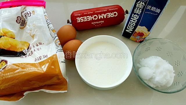 2.把奶油奶酪、淡奶油和酸奶放进料理机搅拌杯里。