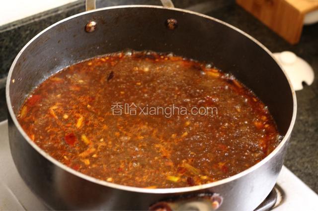 6.锅中加45ml油,凉油小火将花椒焙香,然后放入干红辣椒煸炒成红棕色,捞出备用。