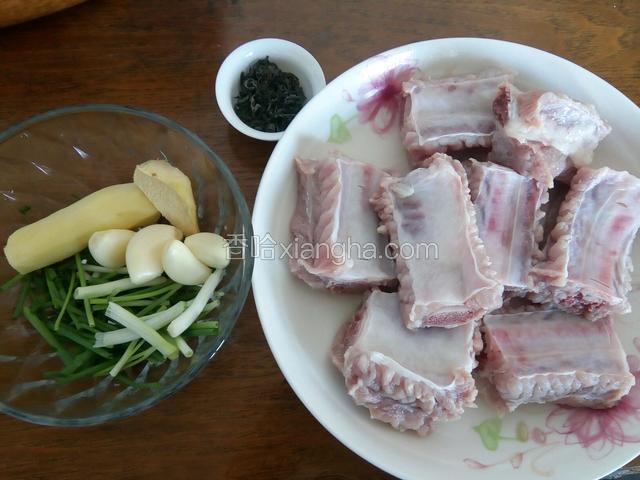 1.排骨泡水,两根大排骨去大头(留着炖汤)