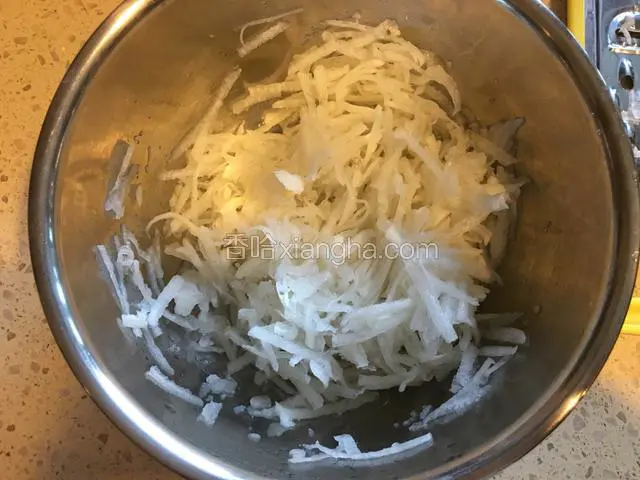 1.白萝卜擦丝,用2g盐腌制10分钟。