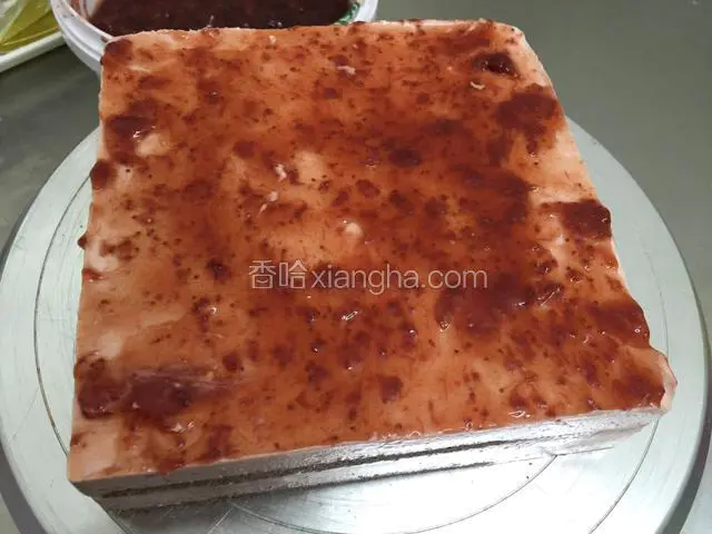 4.巧克力蛋糕胚体一片放在底部.圈膜用保鲜膜包好