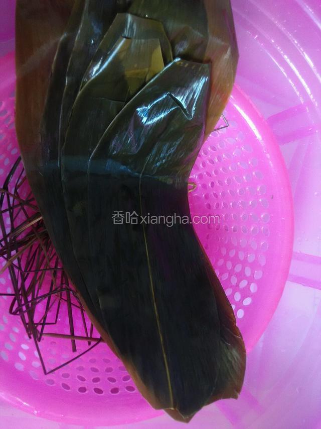 6.把煮好的粽叶和马莲草捞起来洗干净并把粽叶两头修剪。