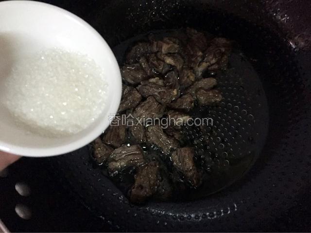 5.锅中倒入适量油烧热后放入牛肉翻炒片刻
