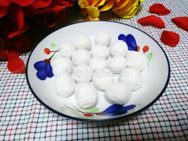 5.擀碎的果仁放到无水的碗里,加入白糖搅匀。