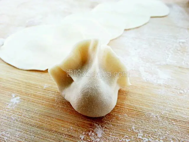 4.肉馅中放入白胡椒粉、老抽、盐、姜末和花椒水,顺时针搅拌上劲