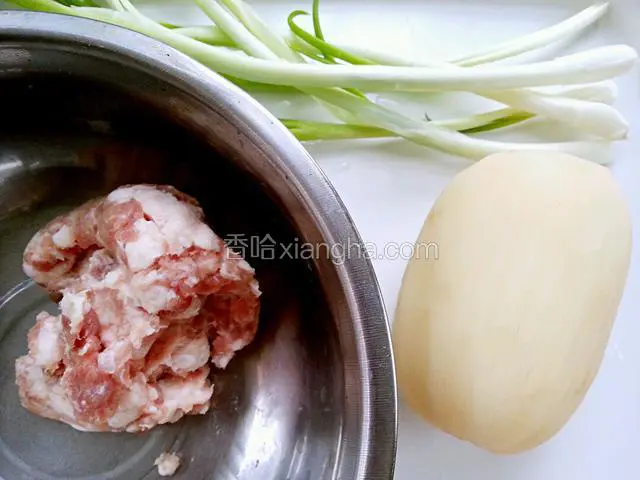 3.准备馅料:香葱提前放冰箱冷冻一小时,取出。剁成末