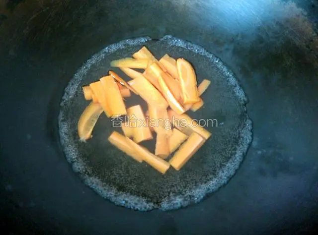 3.胡萝卜放入滚水中煮至七成熟,捞起备用。