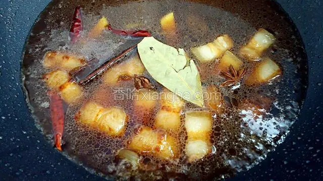 4.锅中放适量油烧至五成热,把冰糖放入锅中用小火融化。