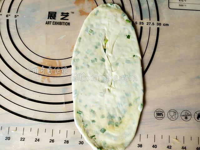 再取一个面团擀成椭圆形。