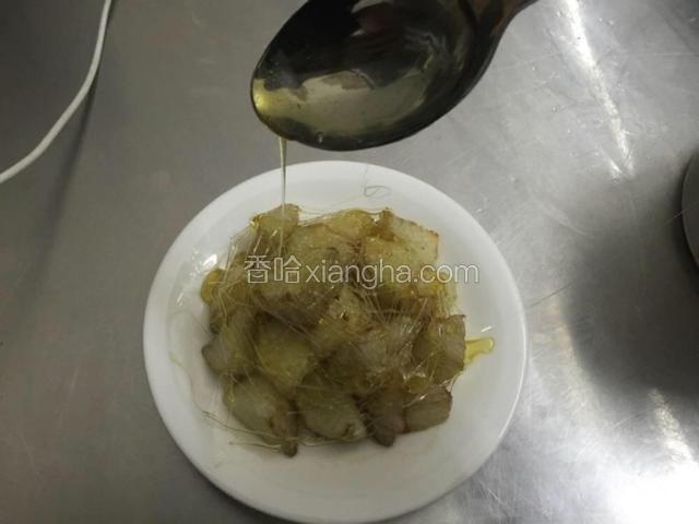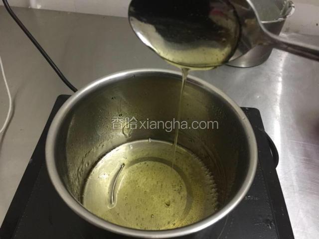 6.小火烧到拉丝.用汤勺倒着拉丝10公分左右即可.不要烧焦了