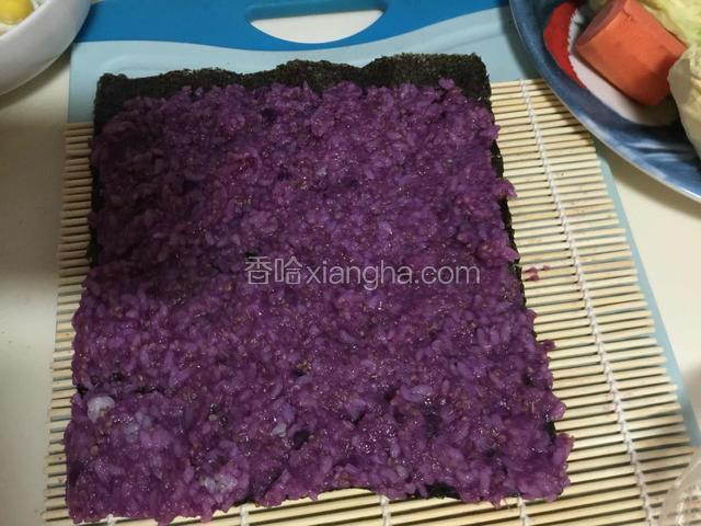 5.然后把拌好寿司醋的米倒入紫薯泥里,掺和均匀